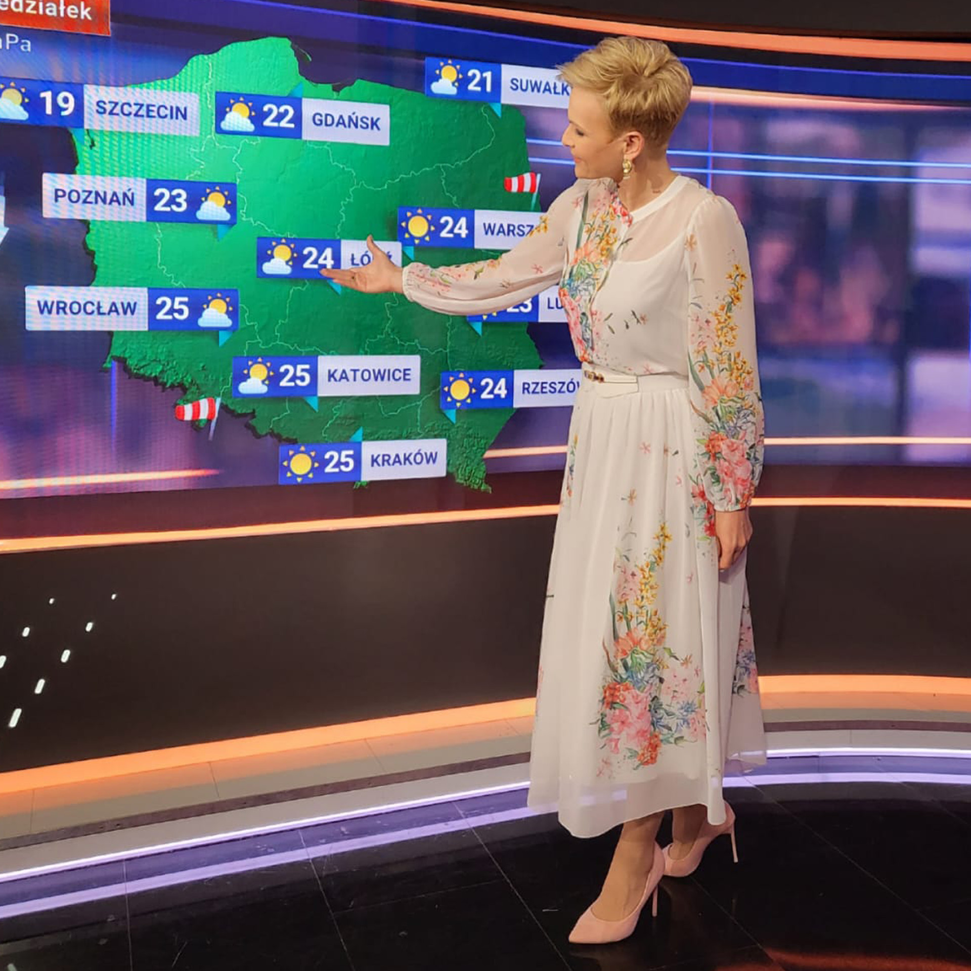 Prezenterka pogody Aleksandra Kostka zachwyciła swoim wyglądem w długiej, białej sukience w kwiaty marki Potis & Verso o nazwie Florencja. Ta piękna sukienka z kolorowym printem kwiatowym jest doskonałym wyborem na wyjątkowe okazje. Dzięki malowanym kwiatom, sukienka pięknie prezentuje się na sylwetce, dodając jej uroku i delikatności. Stylowa i elegancka, ta sukienka z pewnością przypadnie do gustu kobietom, które cenią sobie niekonwencjonalny styl i są otwarte na modowe nowości. Jest to idealny wybór na oficjalne wyjścia oraz rodzinne uroczystości, takie jak chrzciny, komunie czy rodzinne przyjęcia urodzinowe.