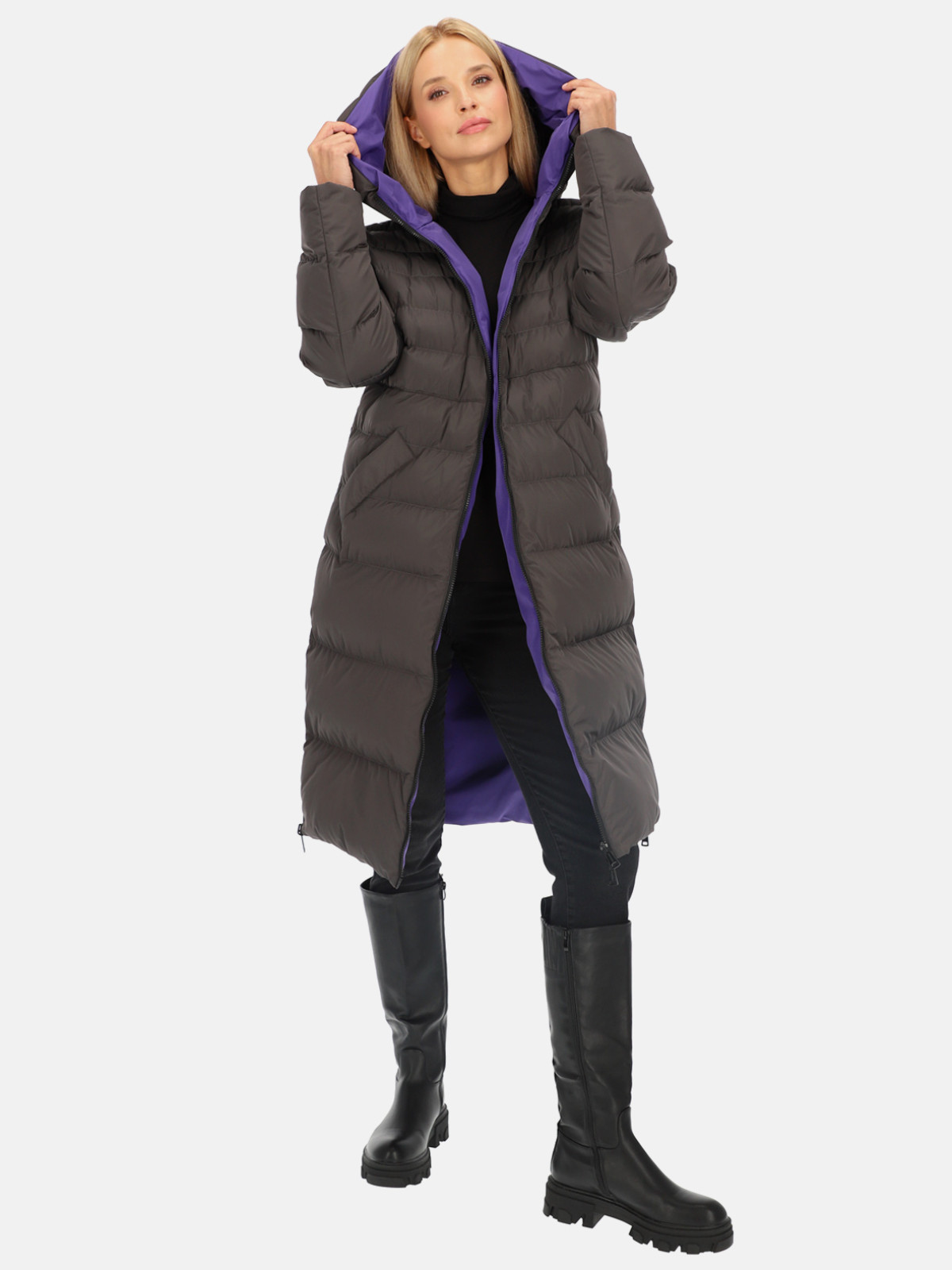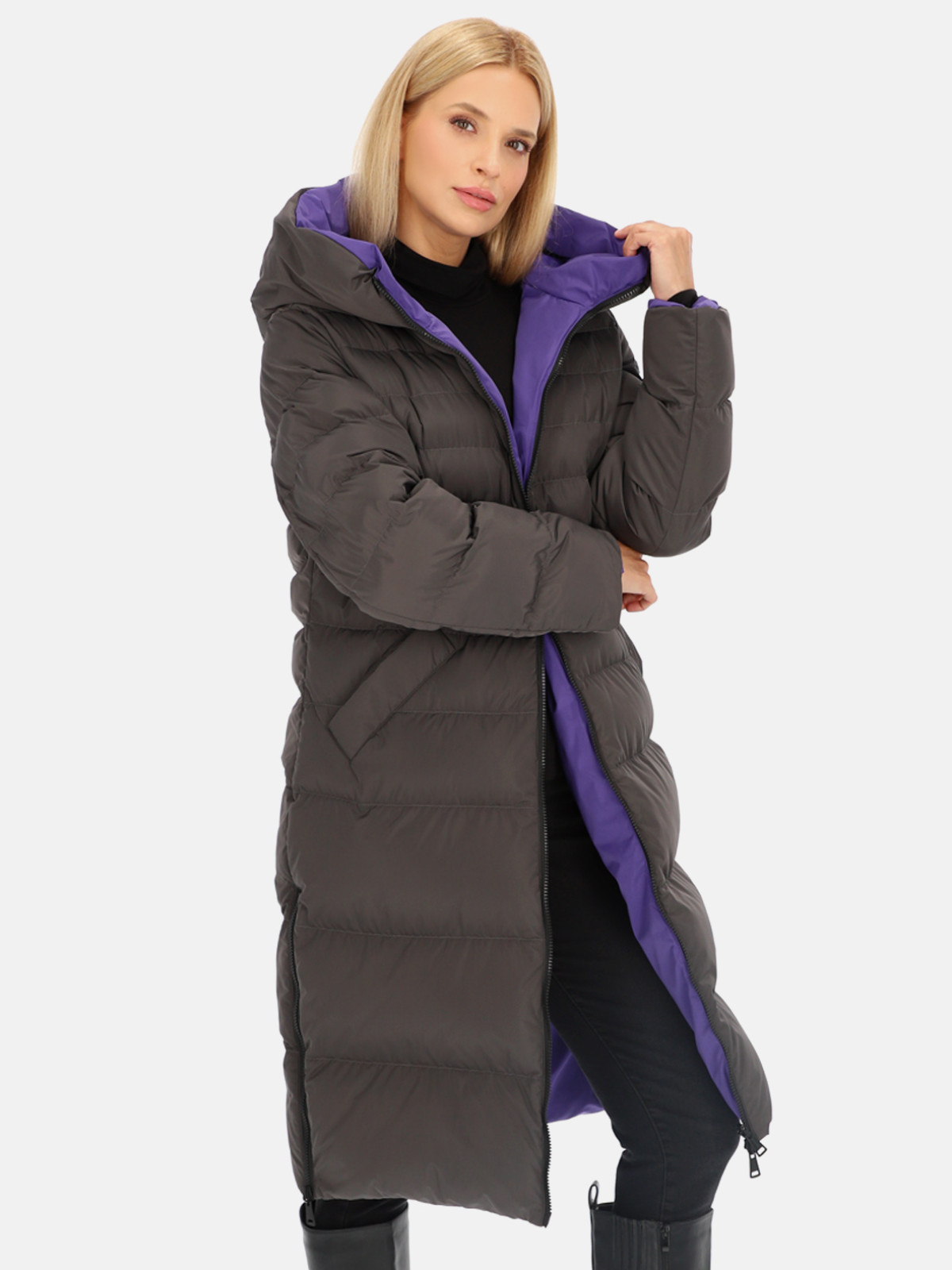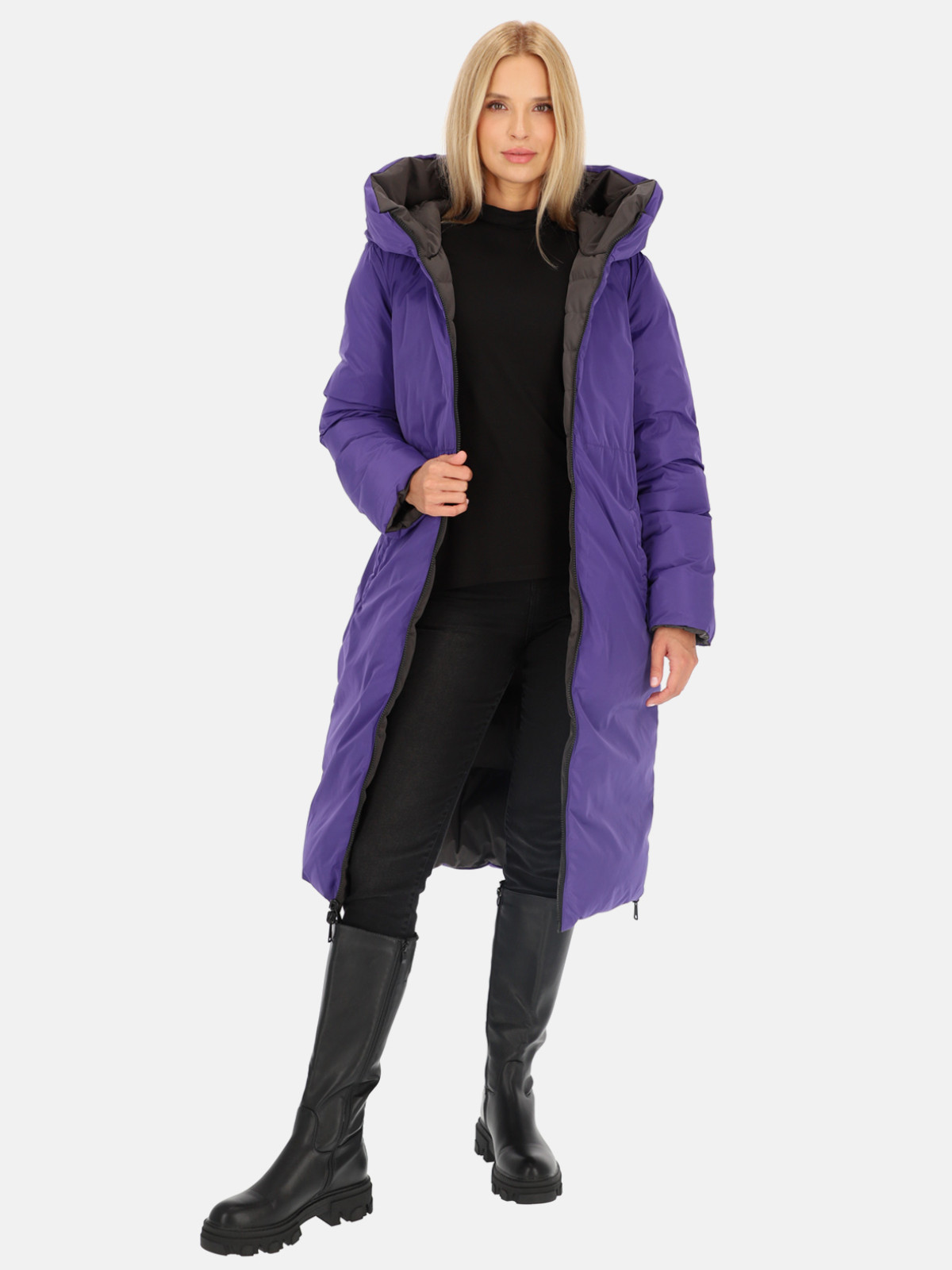 Pozostań ciepła i stylowa w długim, dwustronnym płaszczu damskim Keila, który oferuje dwa unikalne style w jednym modelu. Pikowany materiał zapewnia dodatkową izolację, idealną na chłodniejsze dni, a dwustronność pozwala na swobodną zmianę wyglądu, dostosowując się do Twojego nastroju lub okazji. Praktyczne zapięcie na dwukierunkowy zamek błyskawiczny ułatwia dopasowanie, a boczne kieszenie z zatrzaskami zapewniają miejsce na drobiazgi oraz wygodę użytkowania. Wysoki kołnierz z kapturem skutecznie chroni przed wiatrem i zimnem, dodając jednocześnie elegancji.