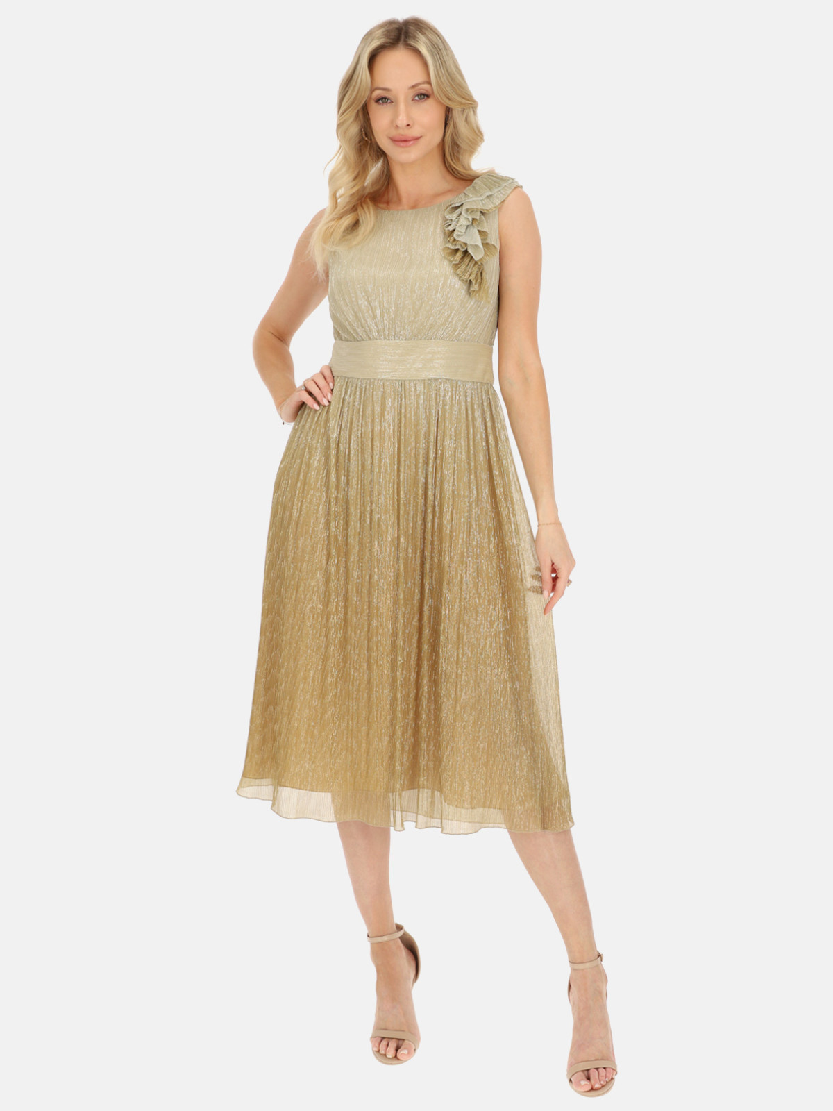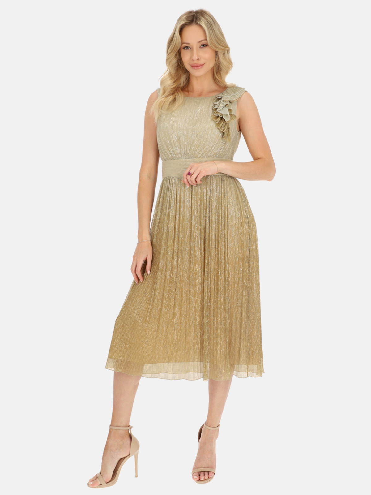 L'AF Rianna to idealna propozycja na wyjątkowe okazje – wesela, bale, przyjęcia czy eleganckie kolacje. Wystarczy dobrać złotą biżuterię i klasyczne szpilki, by stworzyć pełną szyku stylizację. Jeśli wolisz bardziej nowoczesny look, zestaw ją z delikatnymi sandałkami i minimalistycznymi dodatkami. Złota sukienka midi bez rękawów sprawi, że będziesz wyglądać olśniewająco bez względu na okazję!