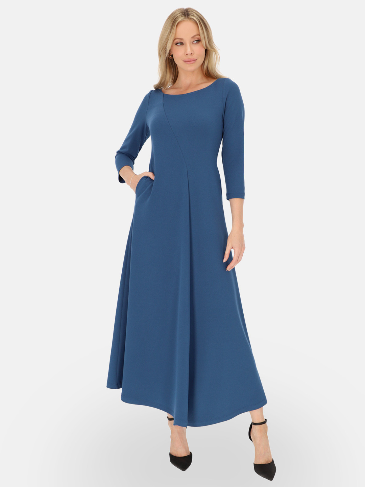 Ta dzianinowa sukienka marki L’AF to propozycja dla kobiet, które stawiają na ponadczasowy styl i wygodę. Miękko otula sylwetkę, a lekko rozszerzany ku dołowi fason pięknie pracuje w ruchu. Gładka, głęboka barwa oraz czyste linie kroju czynią z niej idealną bazę zarówno do stylizacji dziennych, jak i na wyjątkowe okazje. Okrągły dekolt łagodnie podkreśla obojczyki, rękaw 3/4 optycznie wysmukla ramiona, a opcjonalny chain belt może zaakcentować talię i dodać lookowi wieczorowego charakteru. Sukienka ma praktyczne kieszenie, dzięki czemu pozostaje funkcjonalna w ciągu dnia, a jednocześnie zachowuje wytworny sznyt.