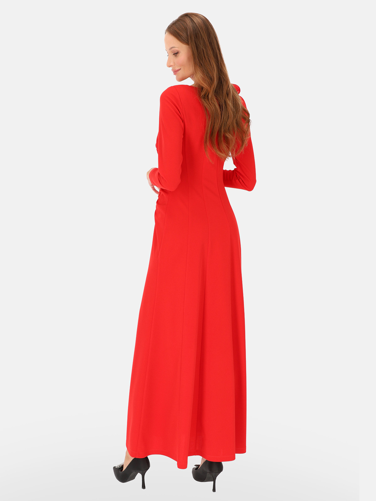 Czerwona wieczorowa sukienka maxi z rozcięciem L'AF Mara