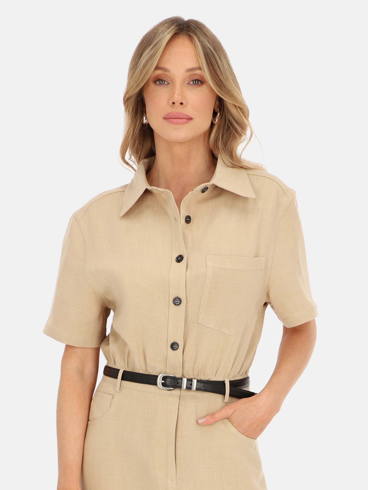 Sukienka Febi marki L’AF to ponadczasowy model o koszulowym fasonie, utrzymany w naturalnym, beżowym odcieniu inspirowanym stylem safari. Minimalistyczna forma i stonowana kolorystyka sprawiają, że jest to idealna baza do wielu eleganckich i codziennych stylizacji.